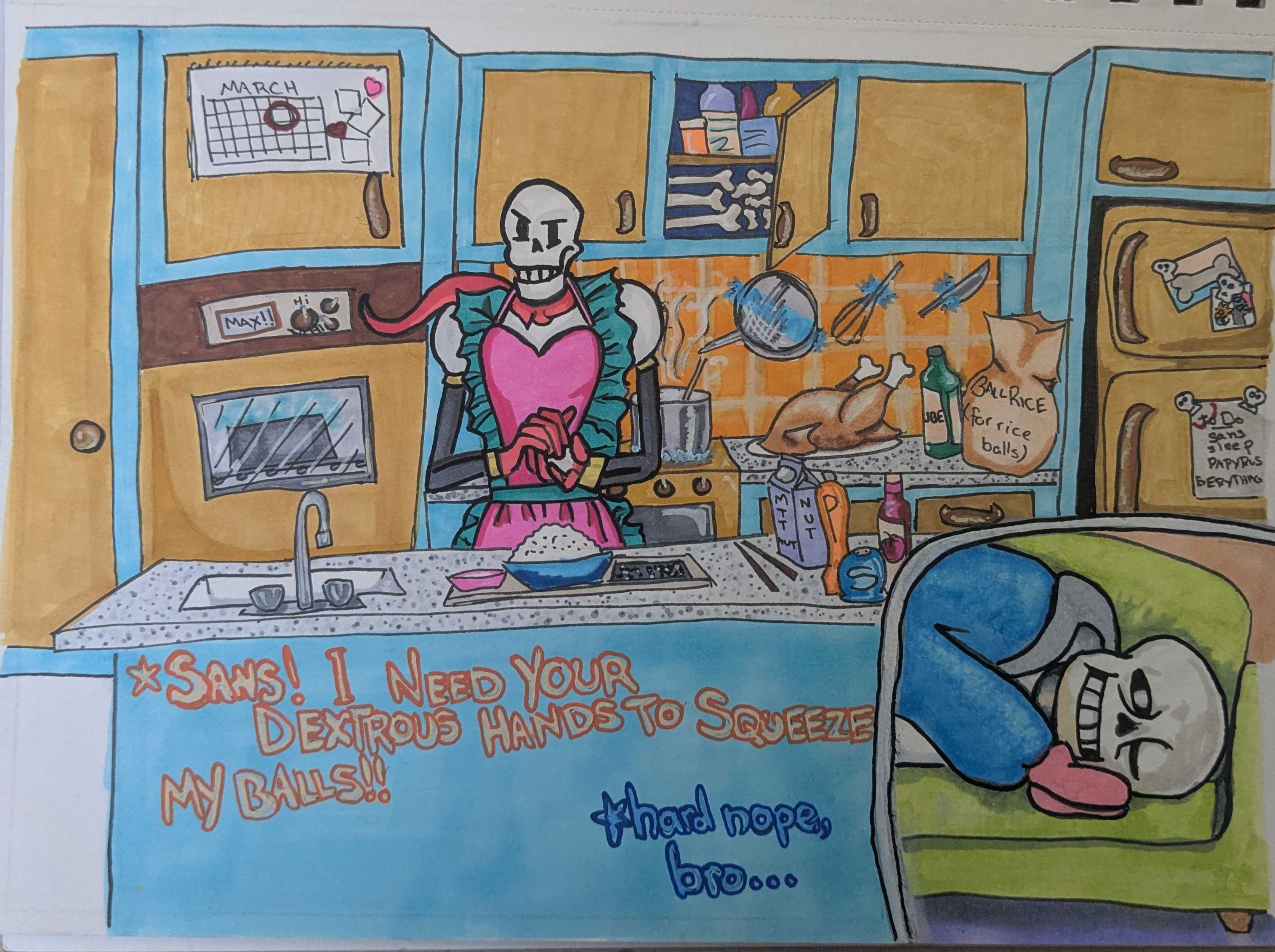 "SANS??" Papyrus called from somewhere else in the apartment. "DO YOU HAVE A MOMENT??"